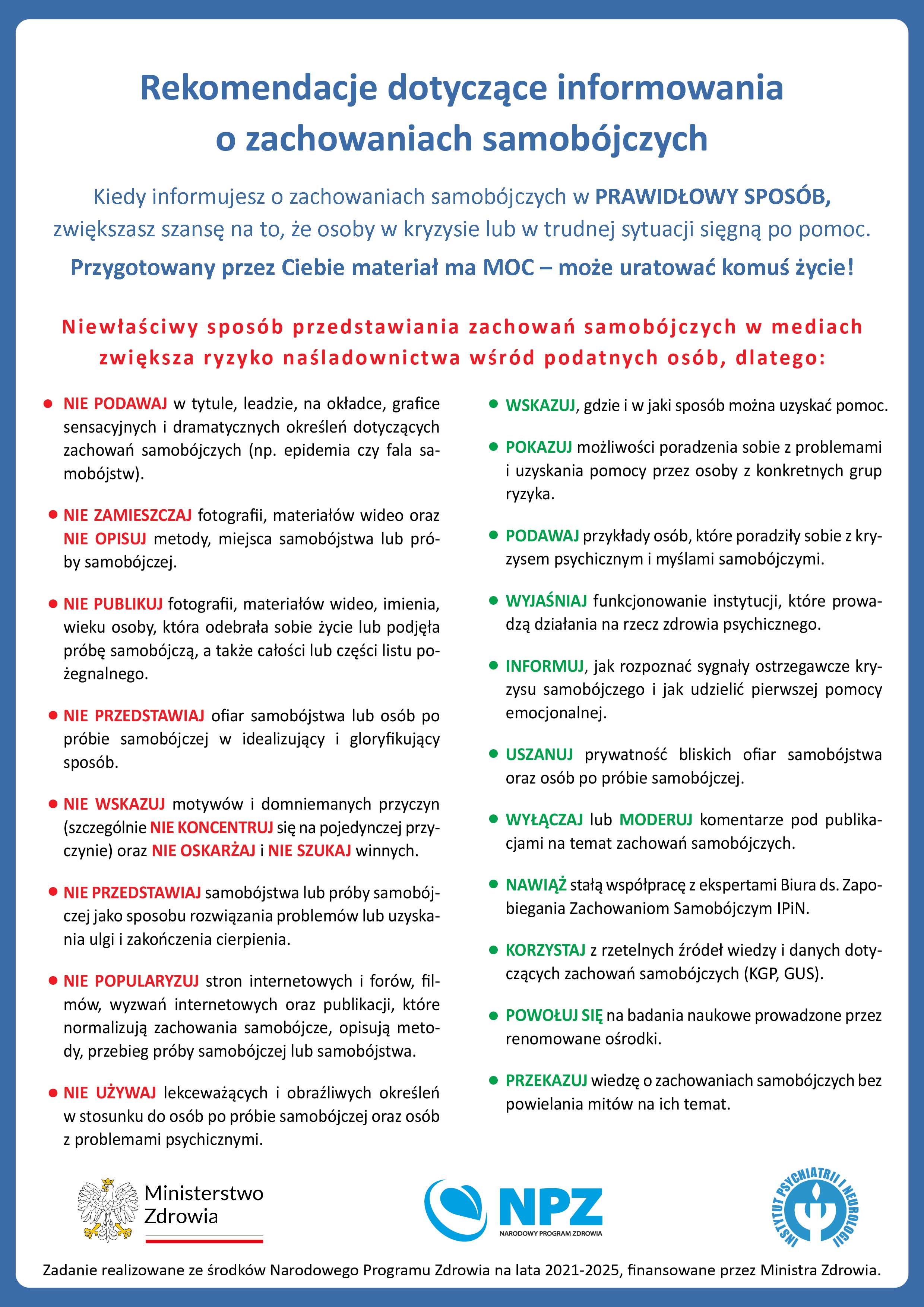 Standardy informowania o zachowaniach samobójczych