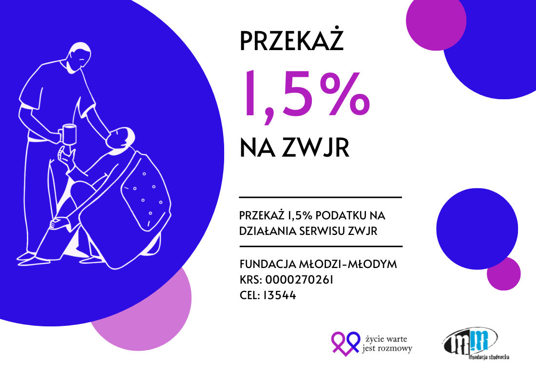 Inicjatywy, które realizujemy, wymagają nakładów finansowych i zatrudniania ekspertów. Dlatego zwracamy się do Ciebie o wsparcie naszych projektów. Wiedz, że Twoje wsparcie pomoże nam w organizacji kolejnych działań i rozwijaniu pomocy na naszej platformie. Każdego dnia piszą do nas osoby w kryzysie i ich bliscy. Na te wiadomości odpisują najlepsi w naszym kraju eksperci. Twoja wpłata zapewni wynagrodzenie za ich pracę, którą wykonują z oddaniem i zaangażowaniem niosąc pomoc tym, którzy stracili sens życia i ich bliskim. Dzięki wsparciu PZU S.A. mogliśmy postawić stronę www.zwjr.pl. Teraz potrzebujemy Twojej pomocy aby ją rozwijać. Dzięki Twojemu wsparciu będziemy mogli sfinansować nowe rzeczy i poszerzyć dostęp do pomocy dla potrzebujących.
