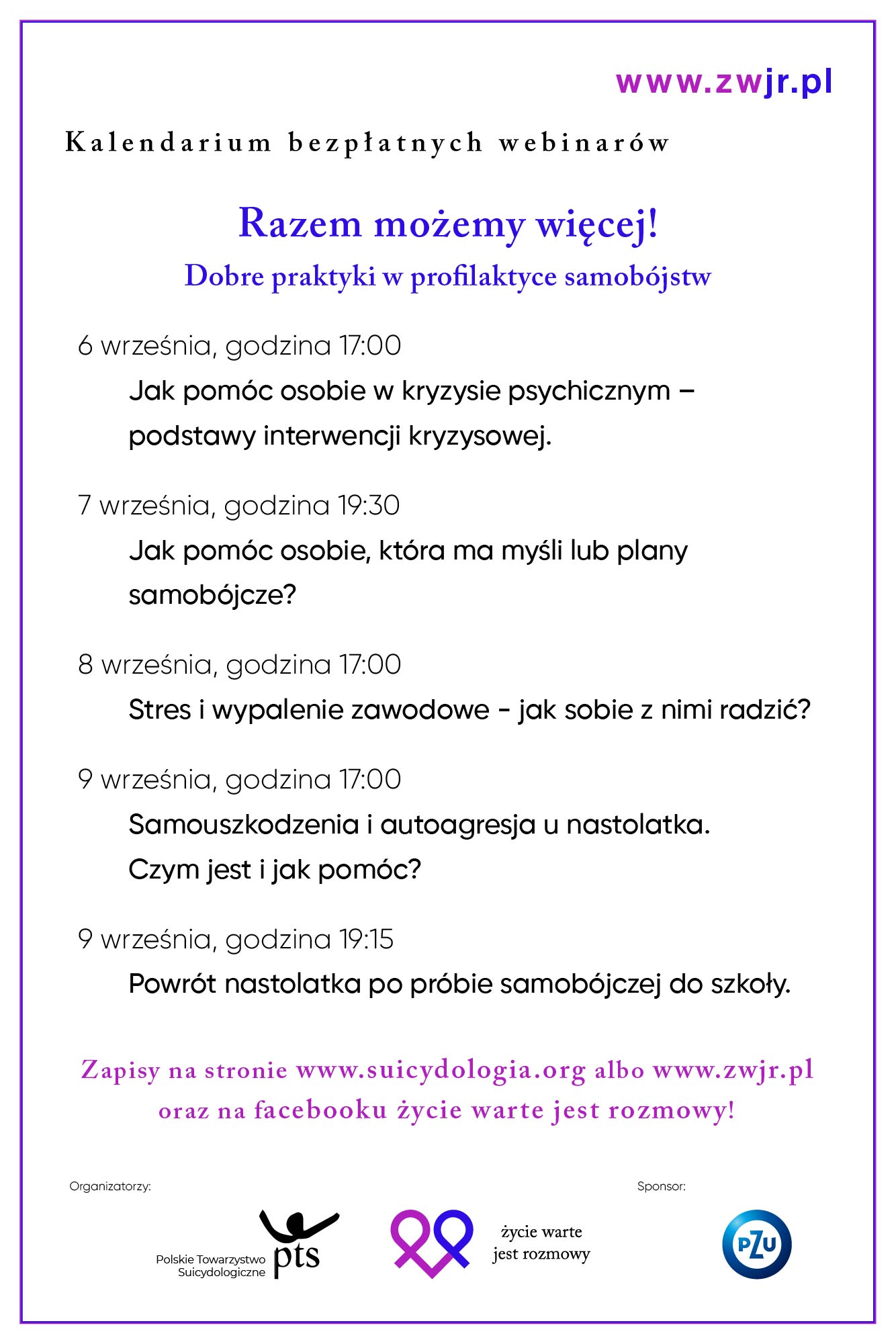 Bezpłatne webinary „Razem możemy więcej! Dobre praktyki w profilaktyce samobójstw”