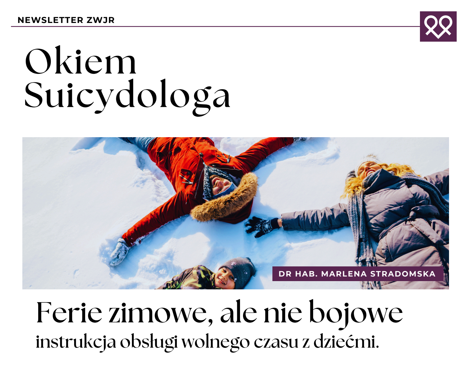 „Okiem Suicydologa” to cykl newsletterów poświęconych zdrowiu psychicznemu, relacjom i ludzkiemu doświadczeniu. Łączy wiedzę specjalistyczną z uważną refleksją nad codziennością, kryzysami i tym, co pomaga chronić życie.